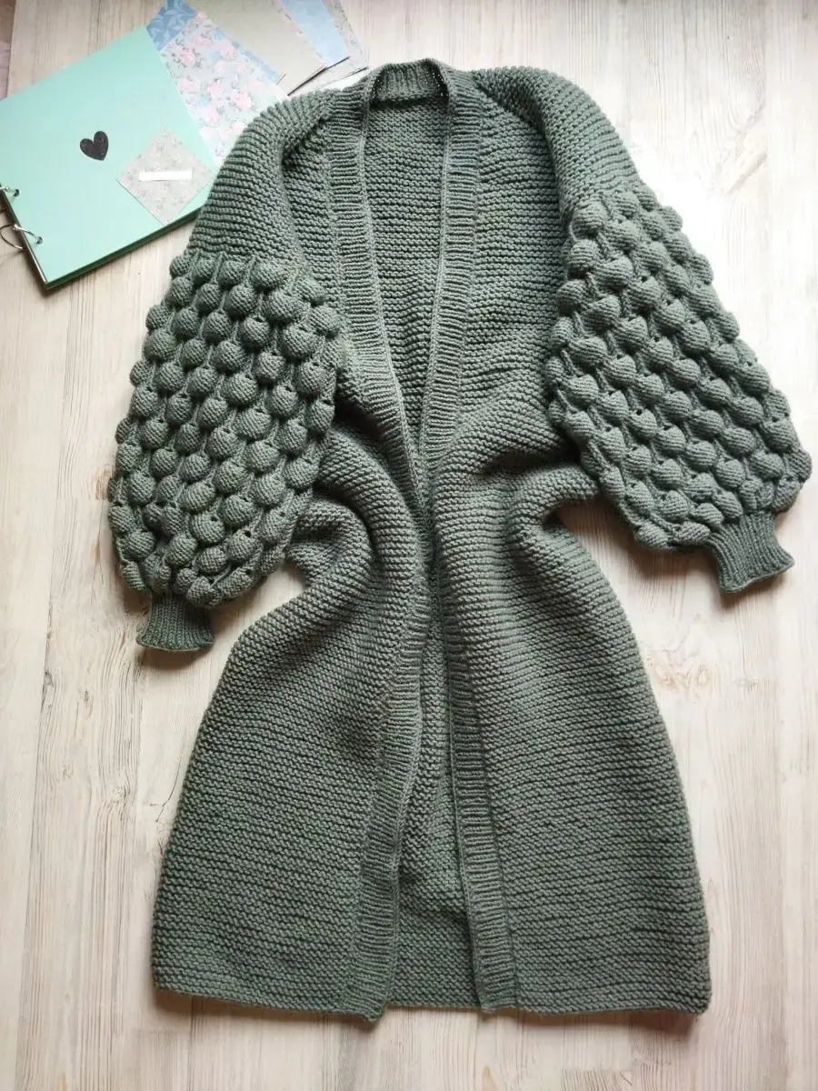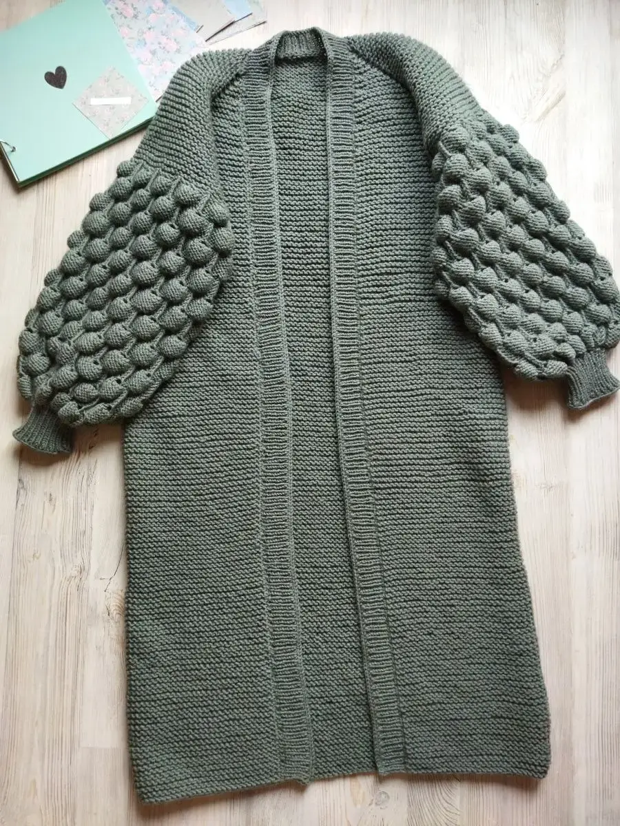 Женский кардиган ниже колена в прекрасном брусничном цветекрупная вязкаотличное качестворучное производствокаждая вещь с любовьюпрямой кройОдежда с комфортом в itsMEknitwear