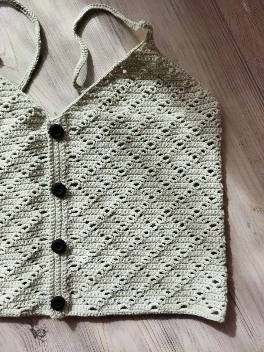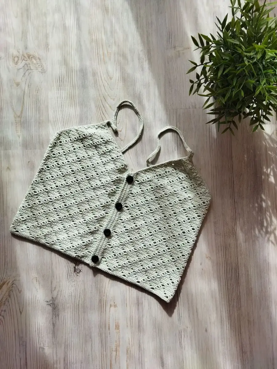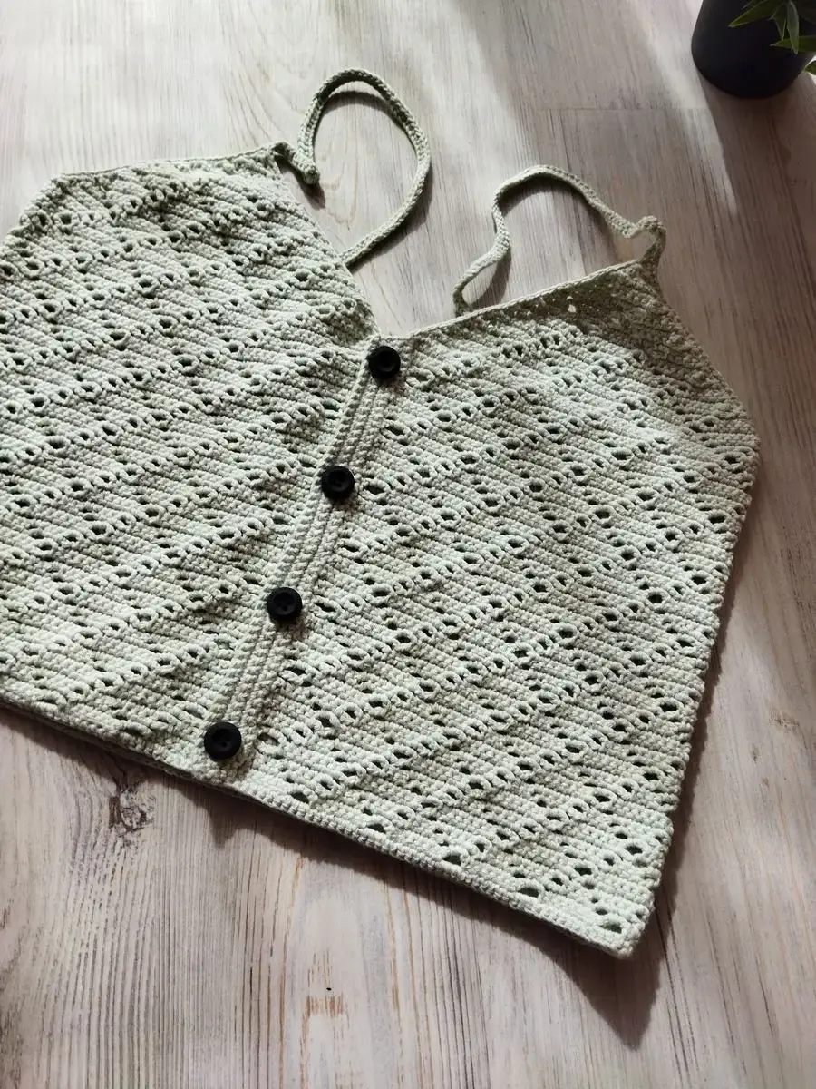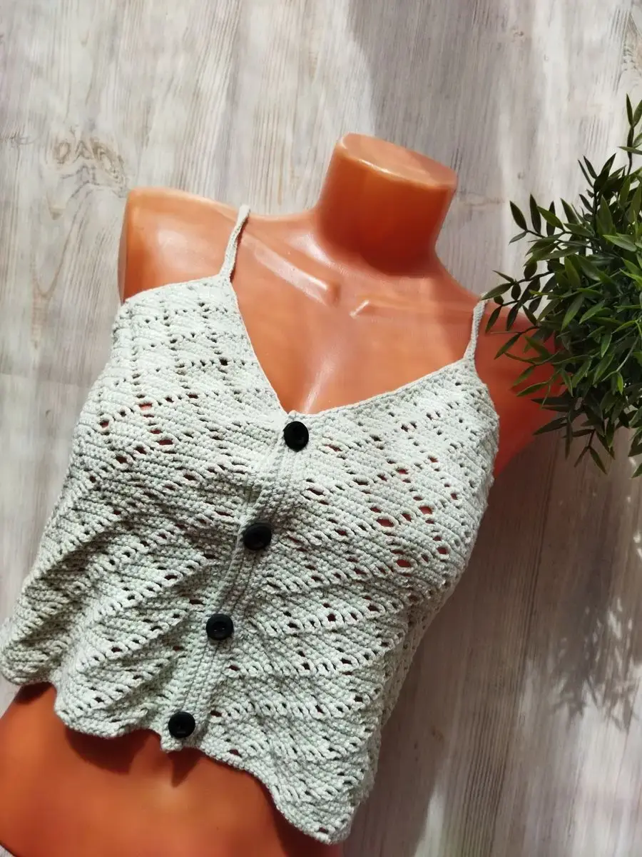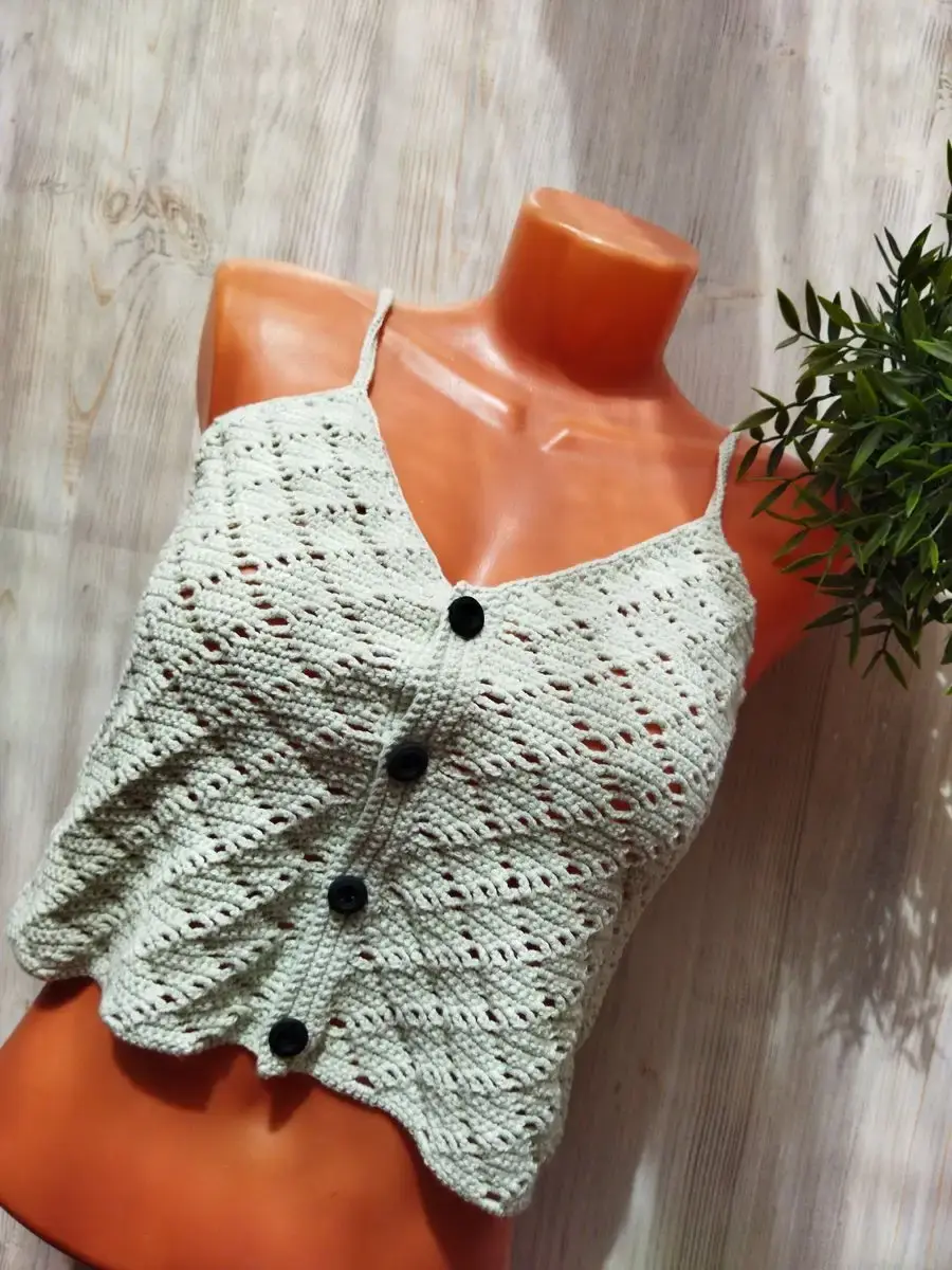 Топ связан вручную крючком без швов. Такую вязку невозможно повторить на машинке или станке.