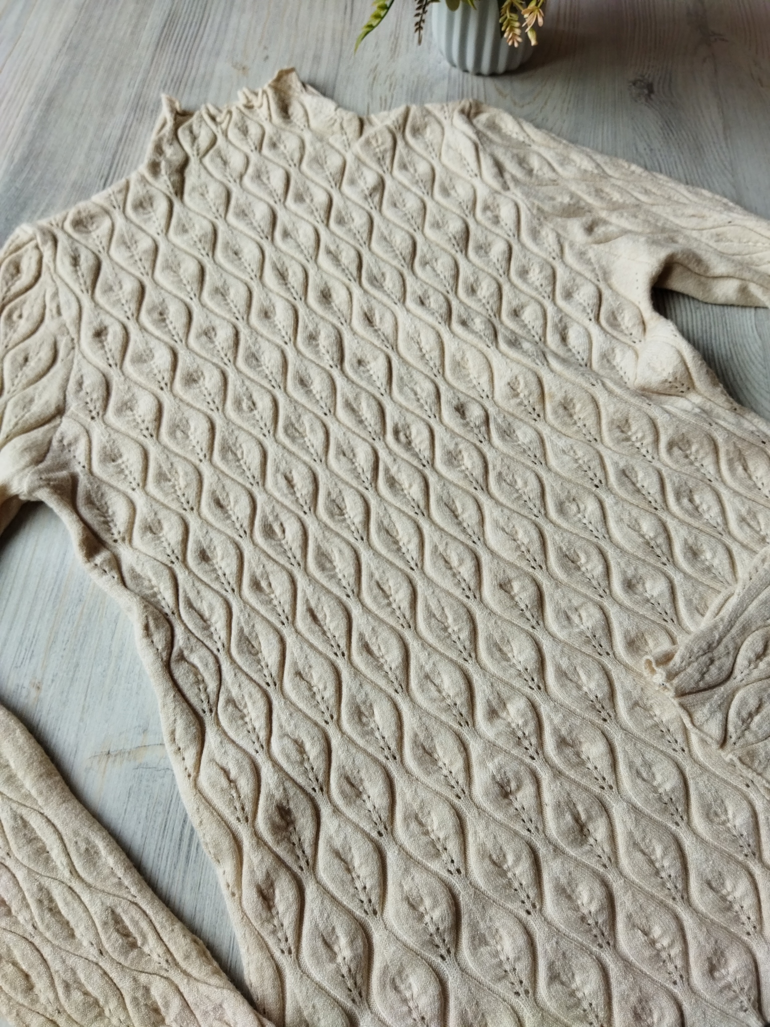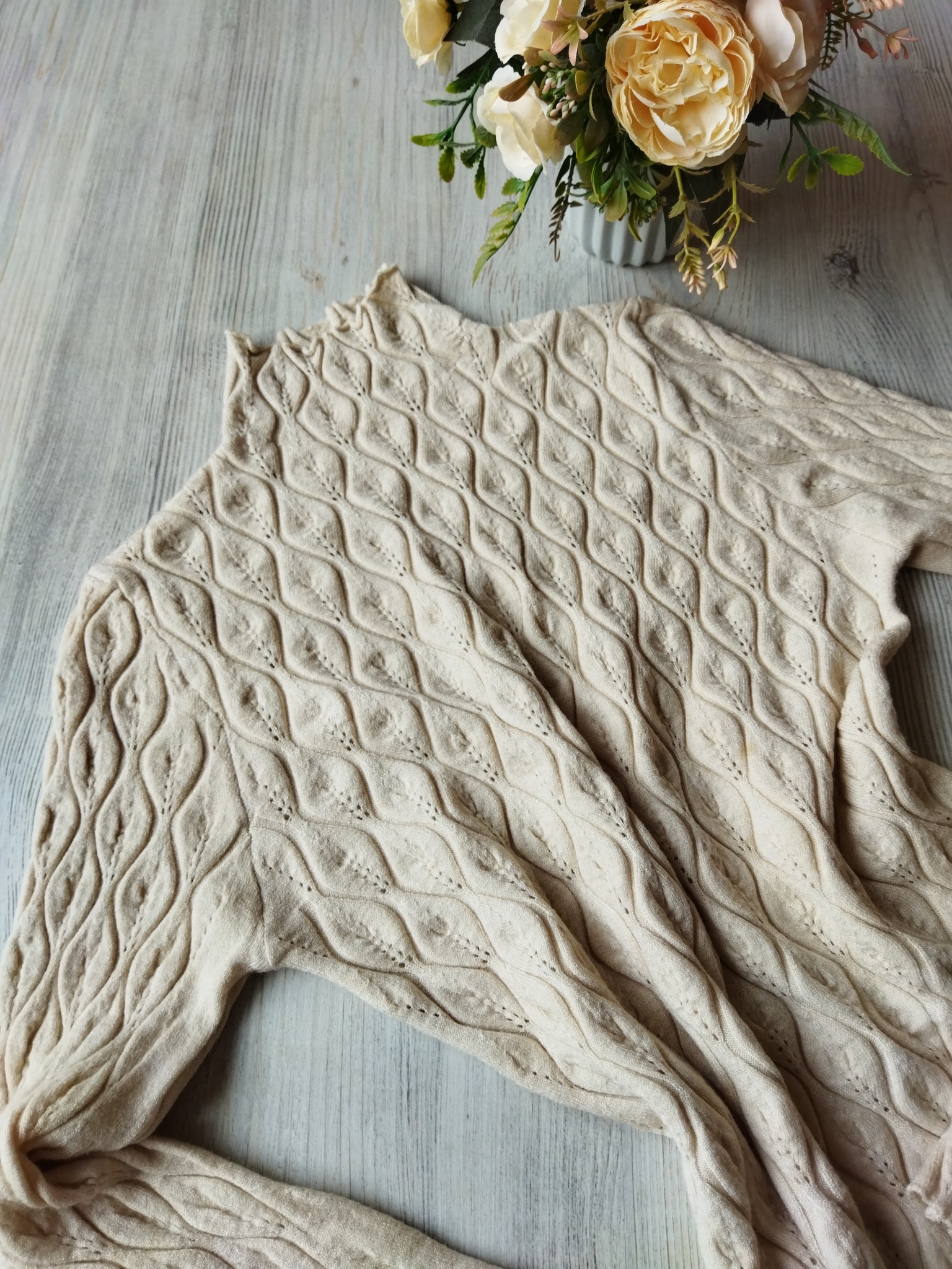 Лонгслив от ItsMe Knitwear станет идеальным дополнением к вашему гардеробу! Этот элегантный свитер выполнен в стиле листьевых мотивов и представлен в универсальном цвете "слоновая кость". Он сделан из мягкого материала, состоящего из 30% кашемира и 70% полиамида, что обеспечивает комфорт и долговечность. Благодаря своему дизайну этот свитер прекрасно подойдет как для школы, так и для работы в офисе. А благодаря ручной стирке при температуре до 30 градусов он сохранит свой первоначальный вид на долгие годы. Носите его с гордостью и наслаждайтесь непревзойденным качеством от ItsMe Knitwear!Свитер-водолазка с узором листья.