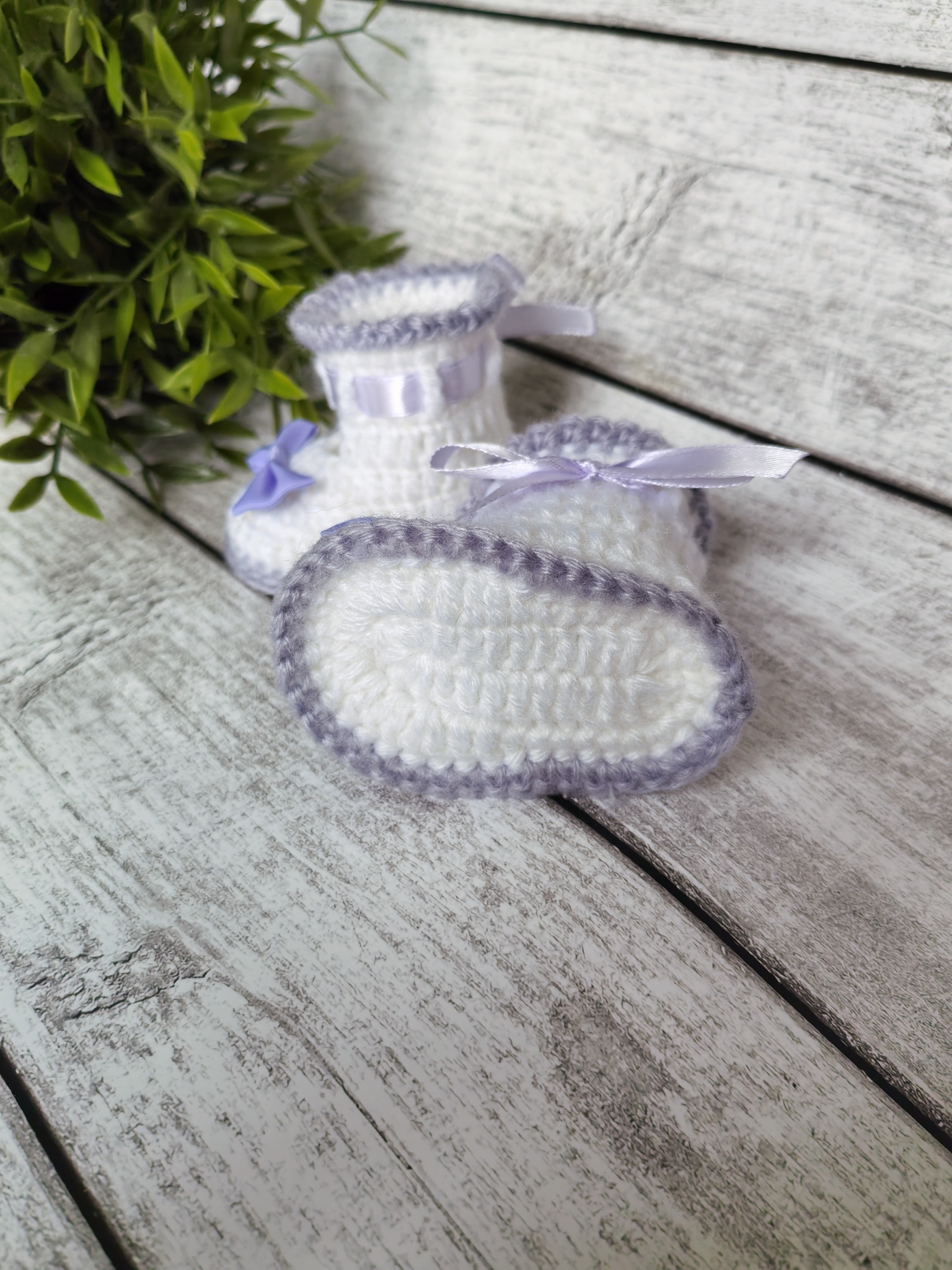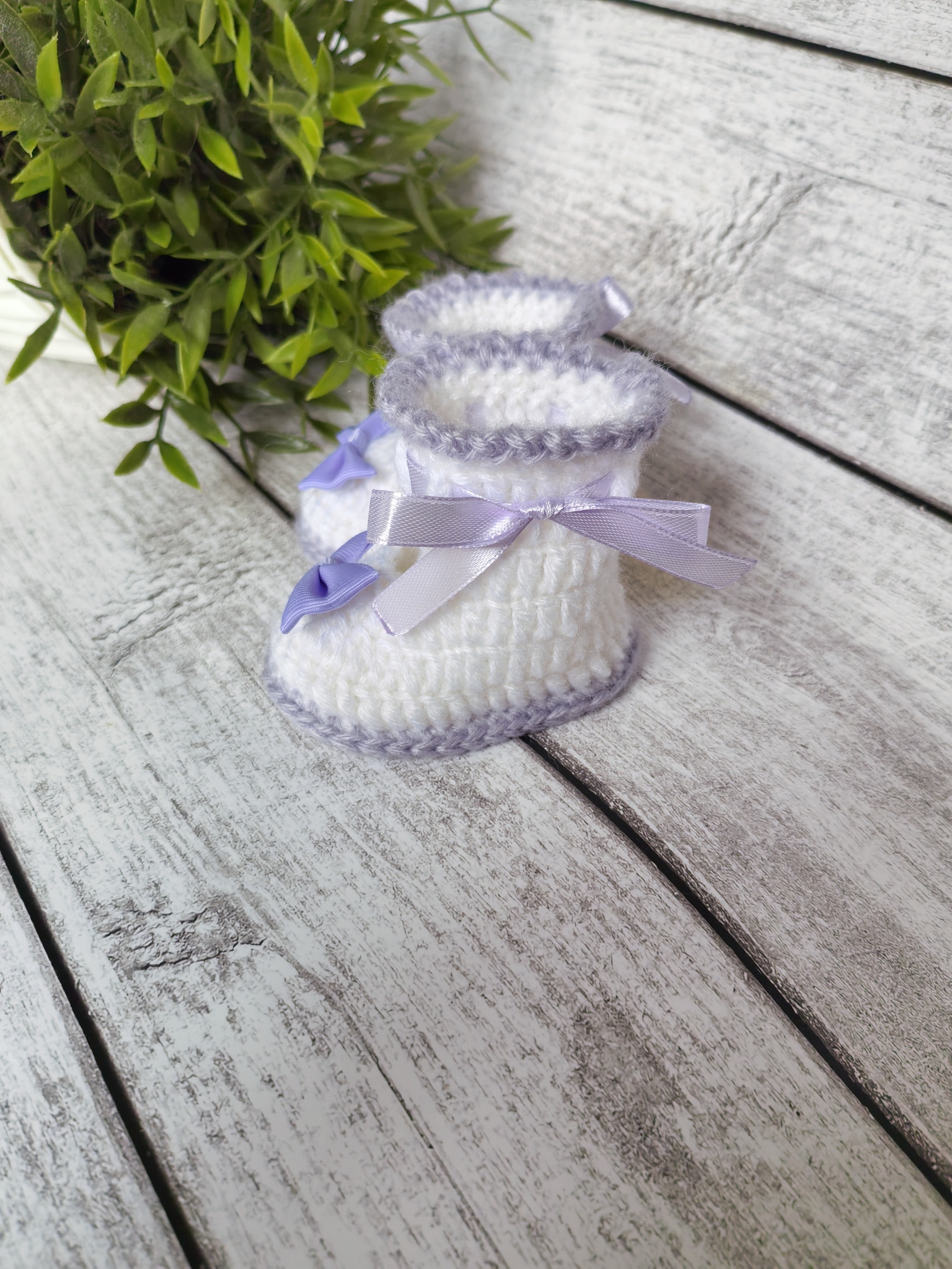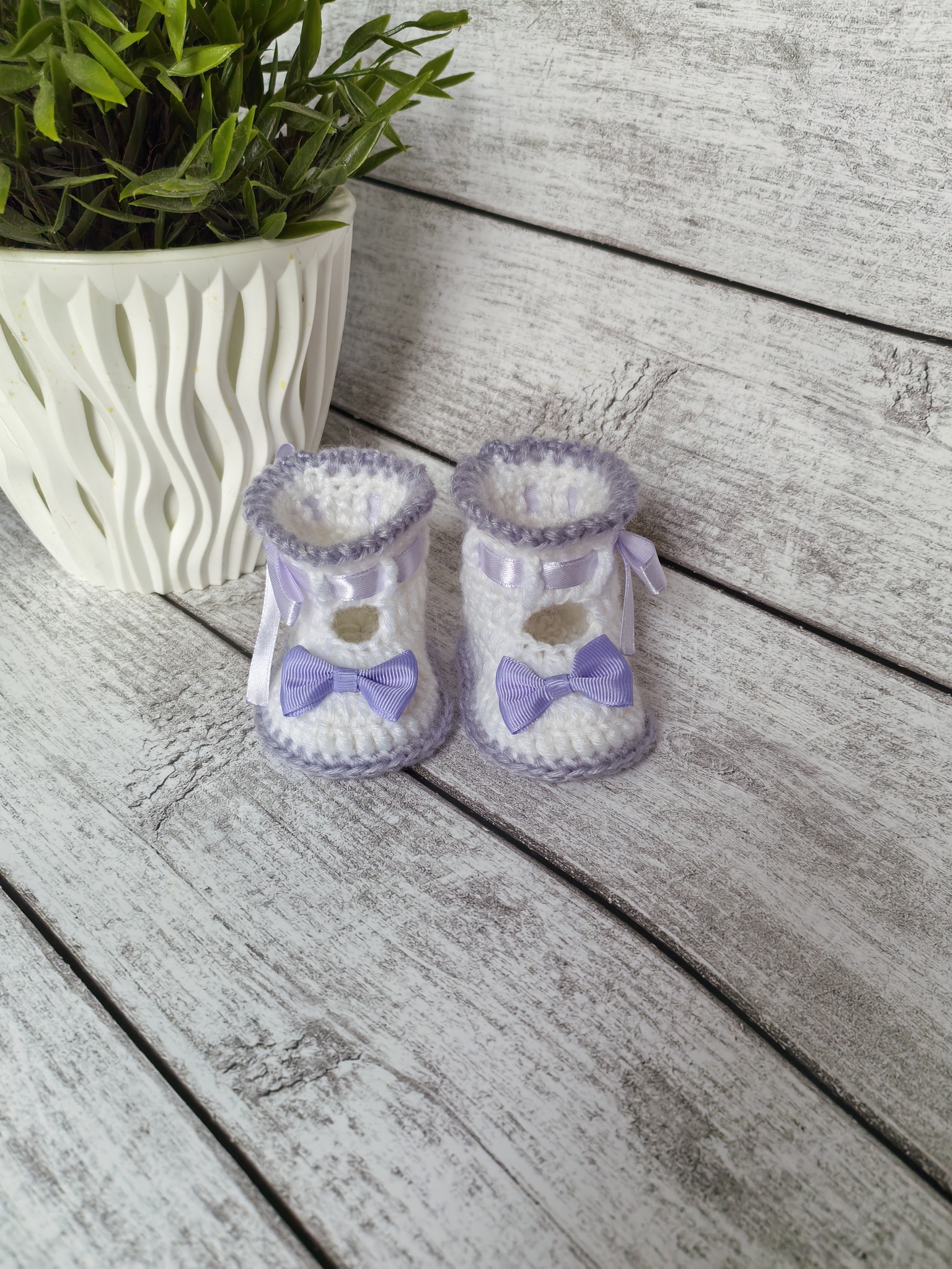 Белые пинетки от российского производителя ItsMe Knitwear — стильный и теплый аксессуар из шерсти, акрила и ангорской пряжи для маленьких модниц. Идеальны для новорожденных благодаря мягкости материалов и удобной конструкции без жестких элементов и стелек. Завязки обеспечивают надежную фиксацию на ножке малыша, а приятный цвет впишется в любой гардероб ребенка.