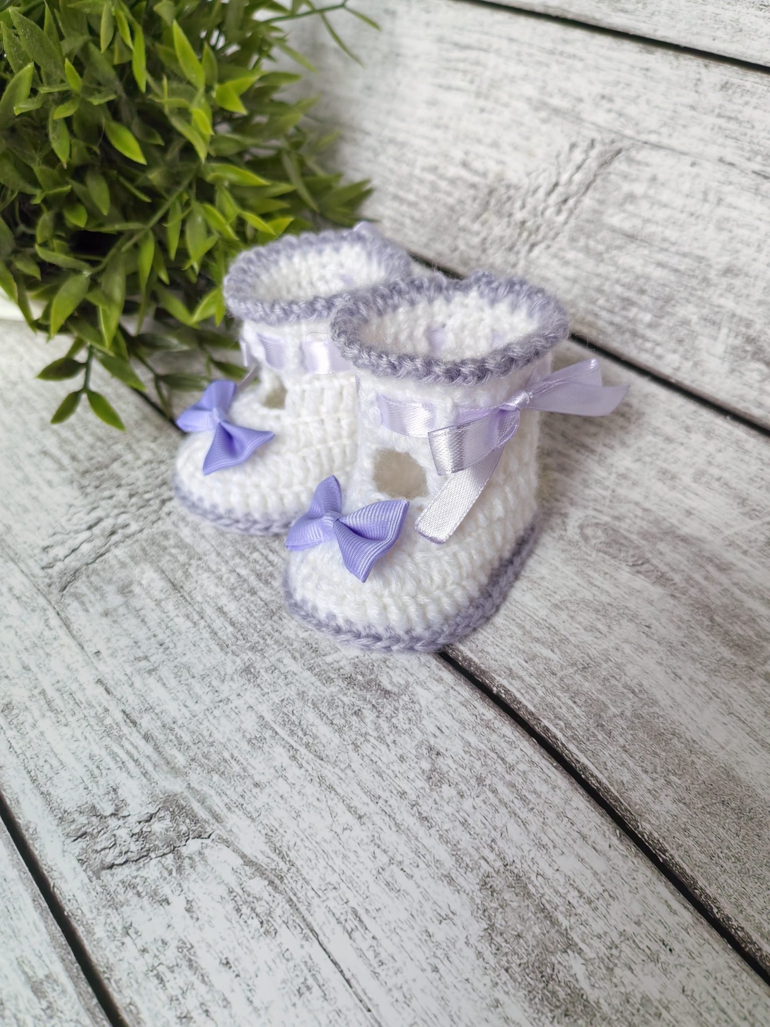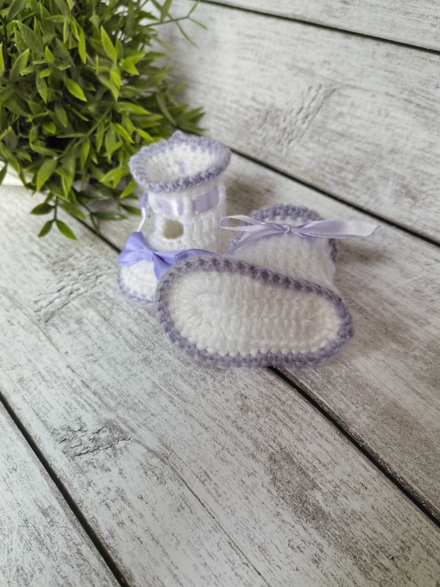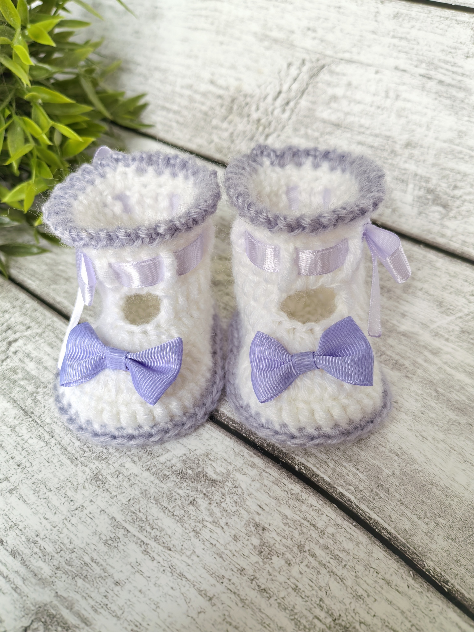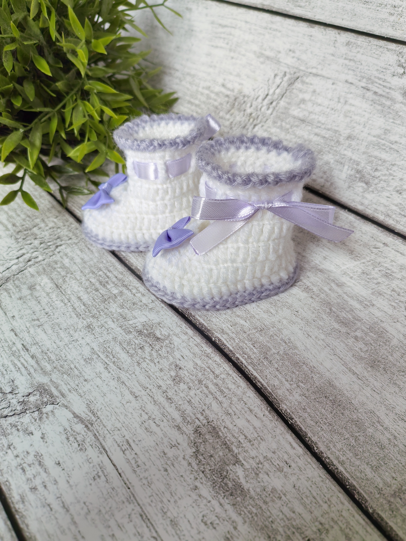 Белые пинетки от российского производителя ItsMe Knitwear — стильный и теплый аксессуар из шерсти, акрила и ангорской пряжи для маленьких модниц. Идеальны для новорожденных благодаря мягкости материалов и удобной конструкции без жестких элементов и стелек. Завязки обеспечивают надежную фиксацию на ножке малыша, а приятный цвет впишется в любой гардероб ребенка.