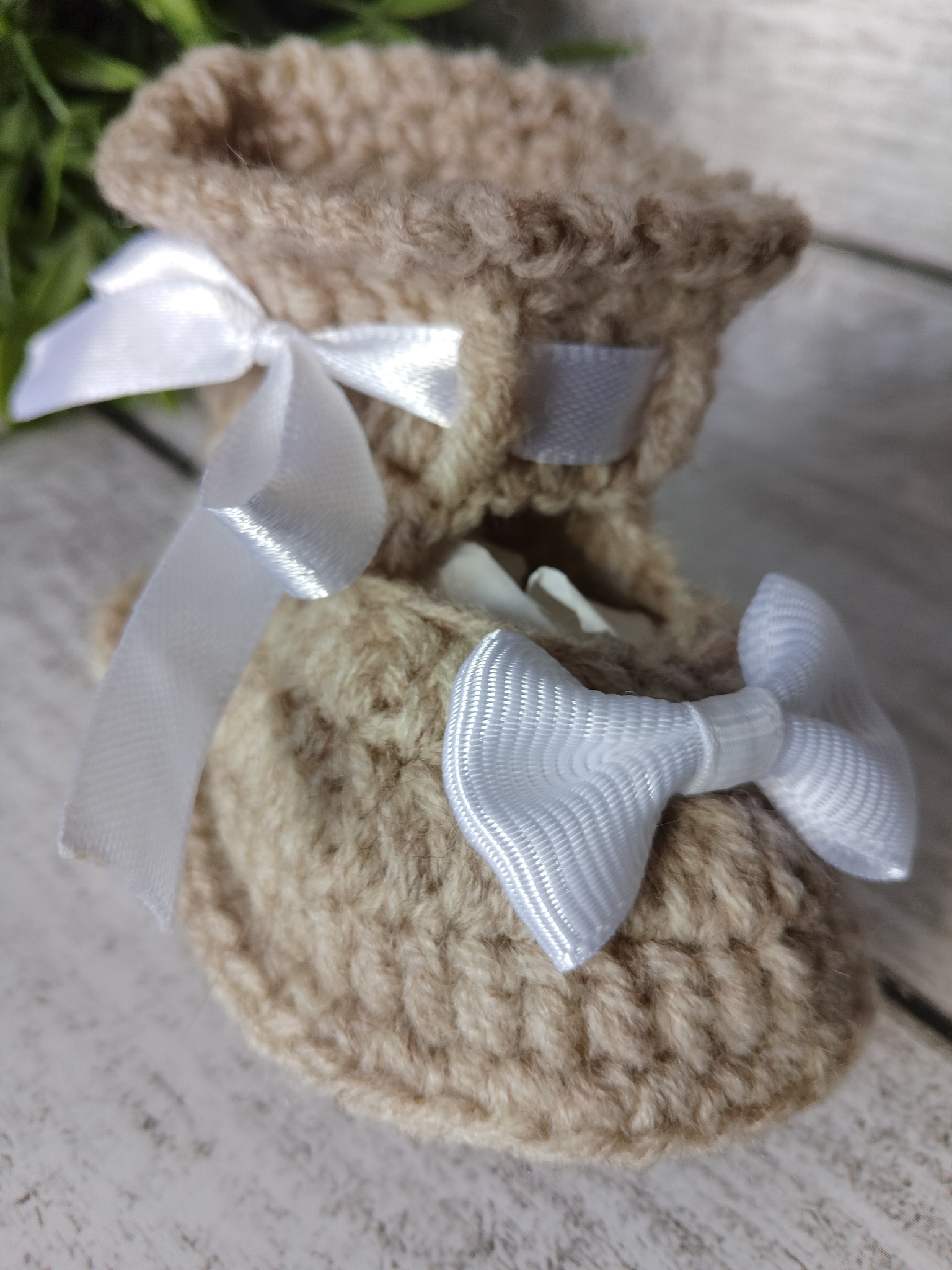 Представляем вам уютные и стильные пинетки от российского производителя ItsMe Knitwear! Эти мягкие и теплые пинетки выполнены из смеси шерсти мериноса и полиамида, что делает их идеальными для защиты маленьких ножек вашего малыша от холода. Благодаря удобной вязке и наличию завязок, они легко надеваются и плотно сидят на ножке, обеспечивая комфорт при каждом шаге. Безподкладочная конструкция позволяет коже дышать, а материал подошвы из полиэстера и шерсти гарантирует долговечность использования. Бежевые пинетки подойдут как мальчикам, так и девочкам благодаря универсальности цвета. Не упустите возможность приобрести качественные и модные вещи для своего ребенка вместе с нами!
