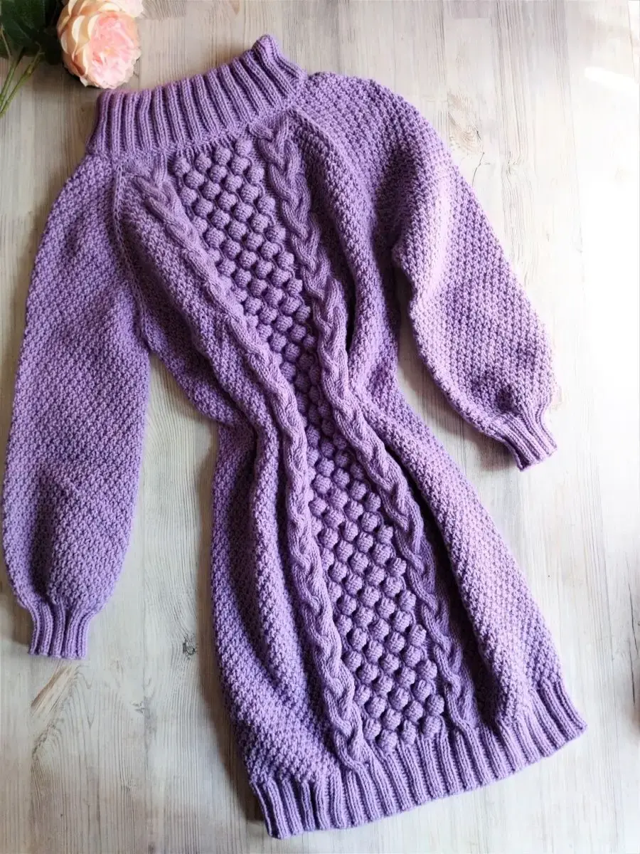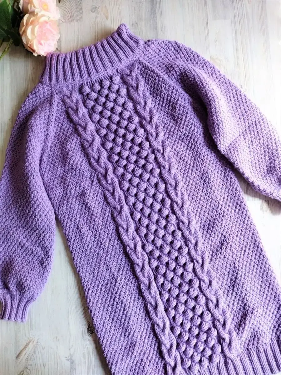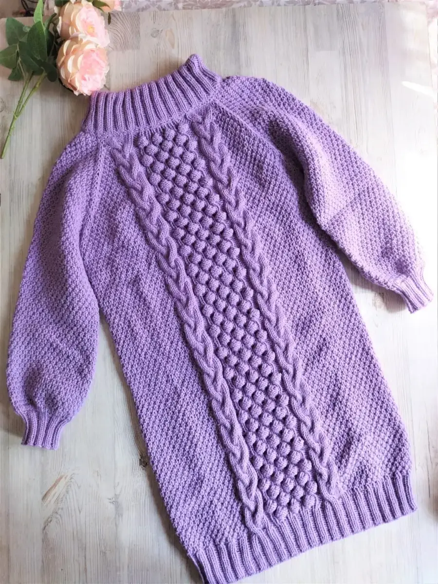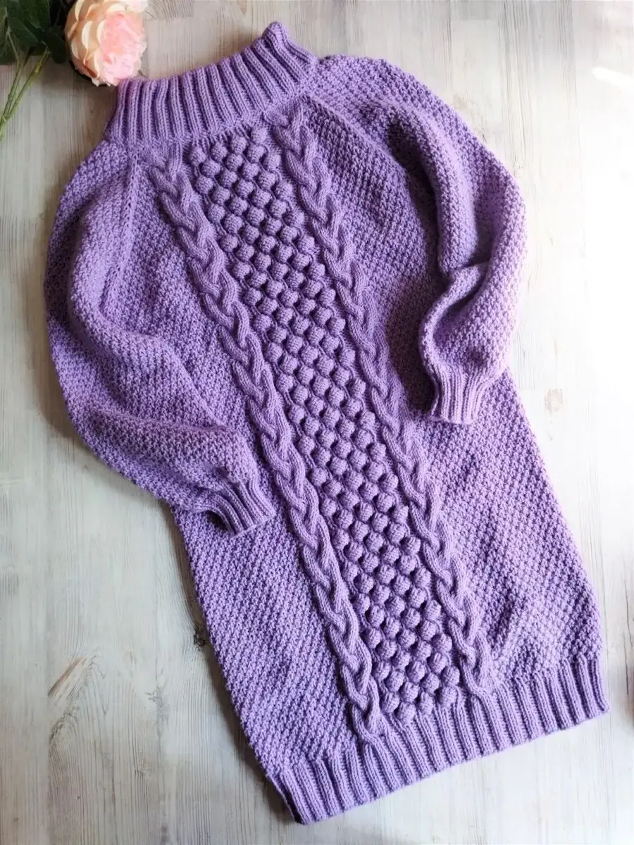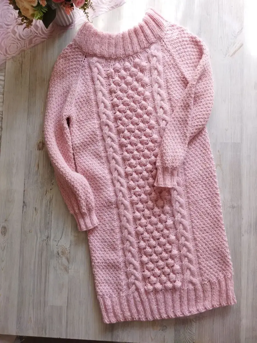 Женское платье ручной работы. Изумительного голубого цвета. Ворот спускается на плечи. Непременно это вязаное платье станет одним из любимчиков в вашем гардеробе.