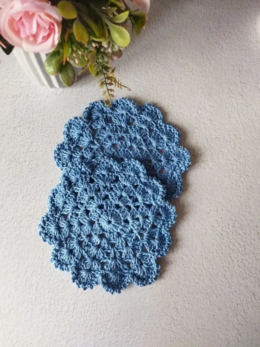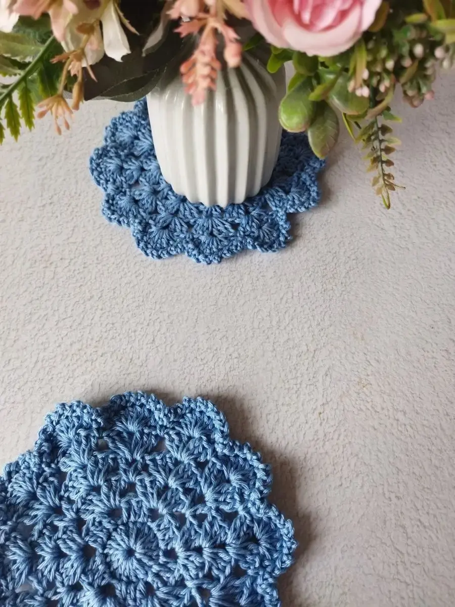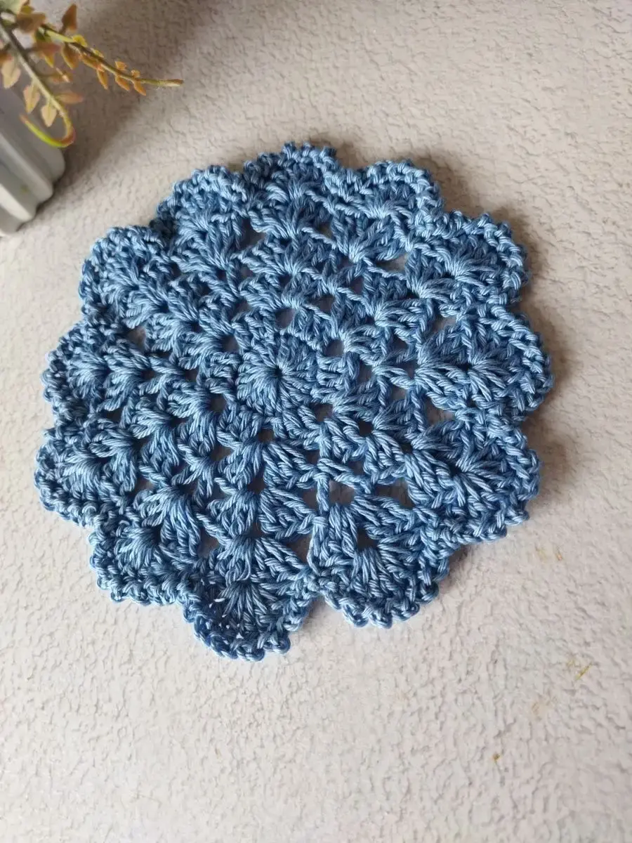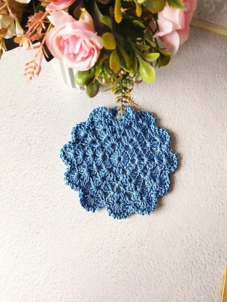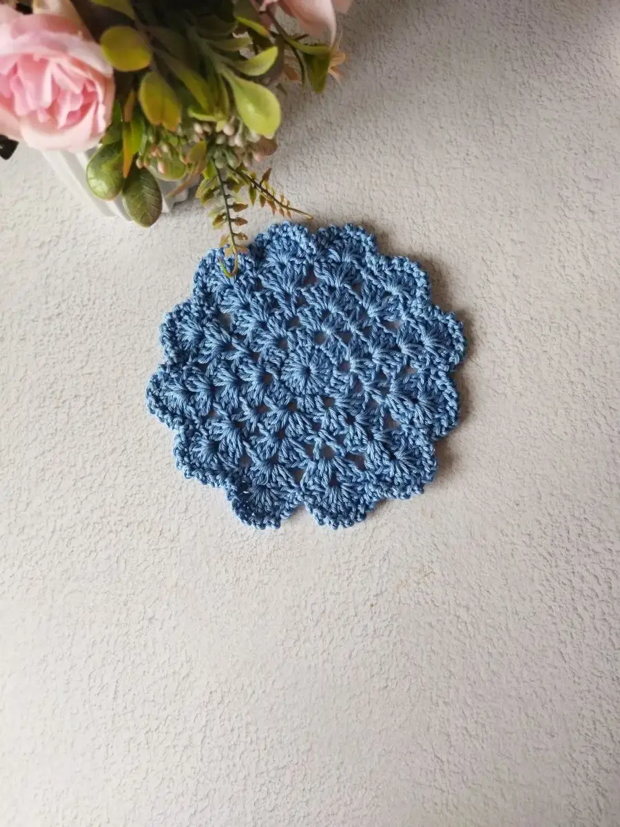 Салфетка связана вручную крючком. Это изделие отлично дополнит интерьер Вашего дома. Можно использовать как подставку под вазу с цветами, подставку под цветочный горшок, подставку под горячее. Так же она может быть сервировочным предметом, либо самостоятельным элементом интерьера.
