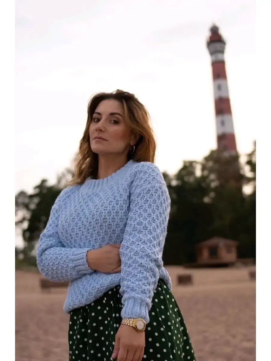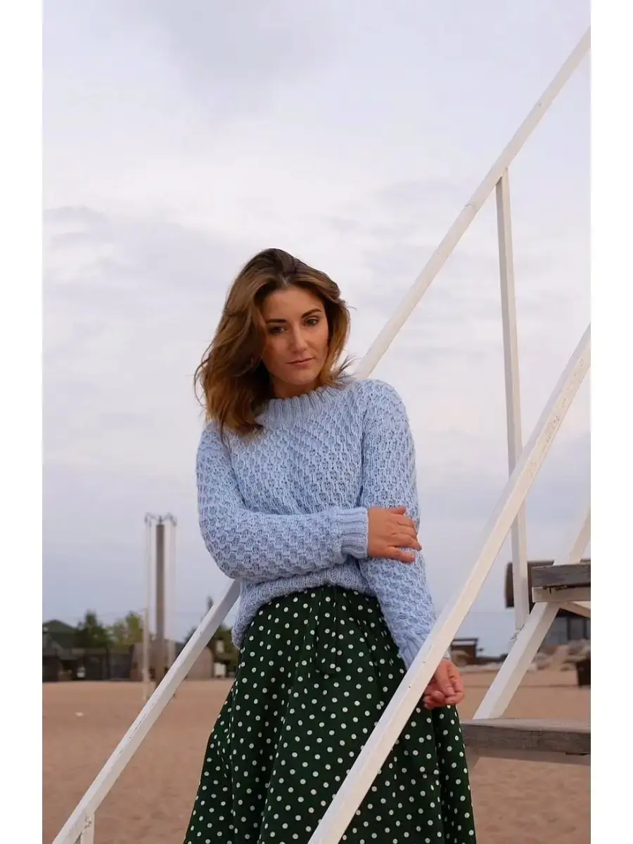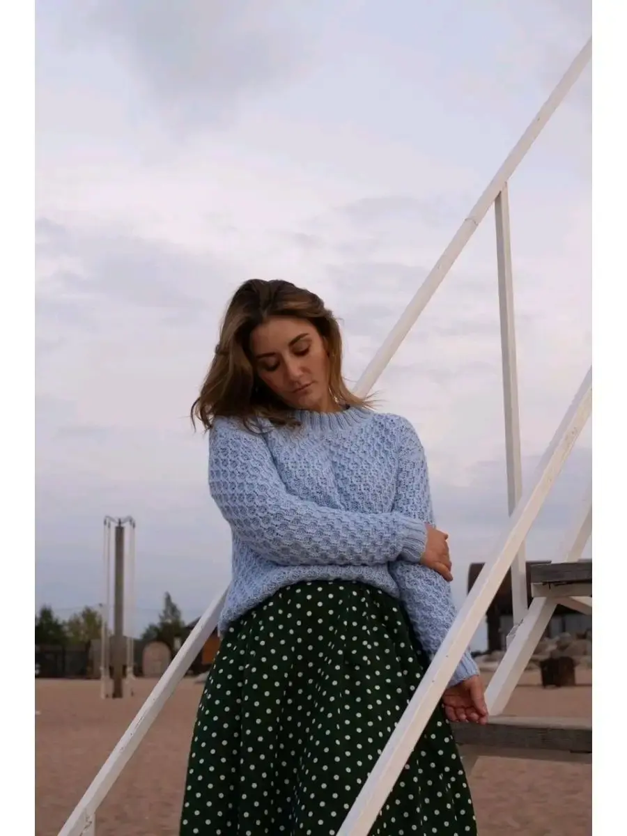 Женский свитер, связанный вручную спицами, это всегда эксклюзив, который не встретишь в обычных магазинах масс-маркета. Благородный цвет, удобный фасон, изысканный узор. Данная модель свитера имеет все шансы стать любимой.