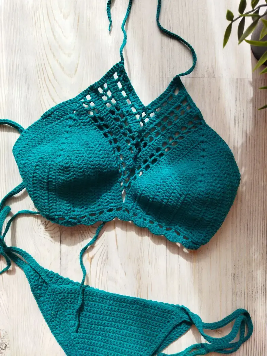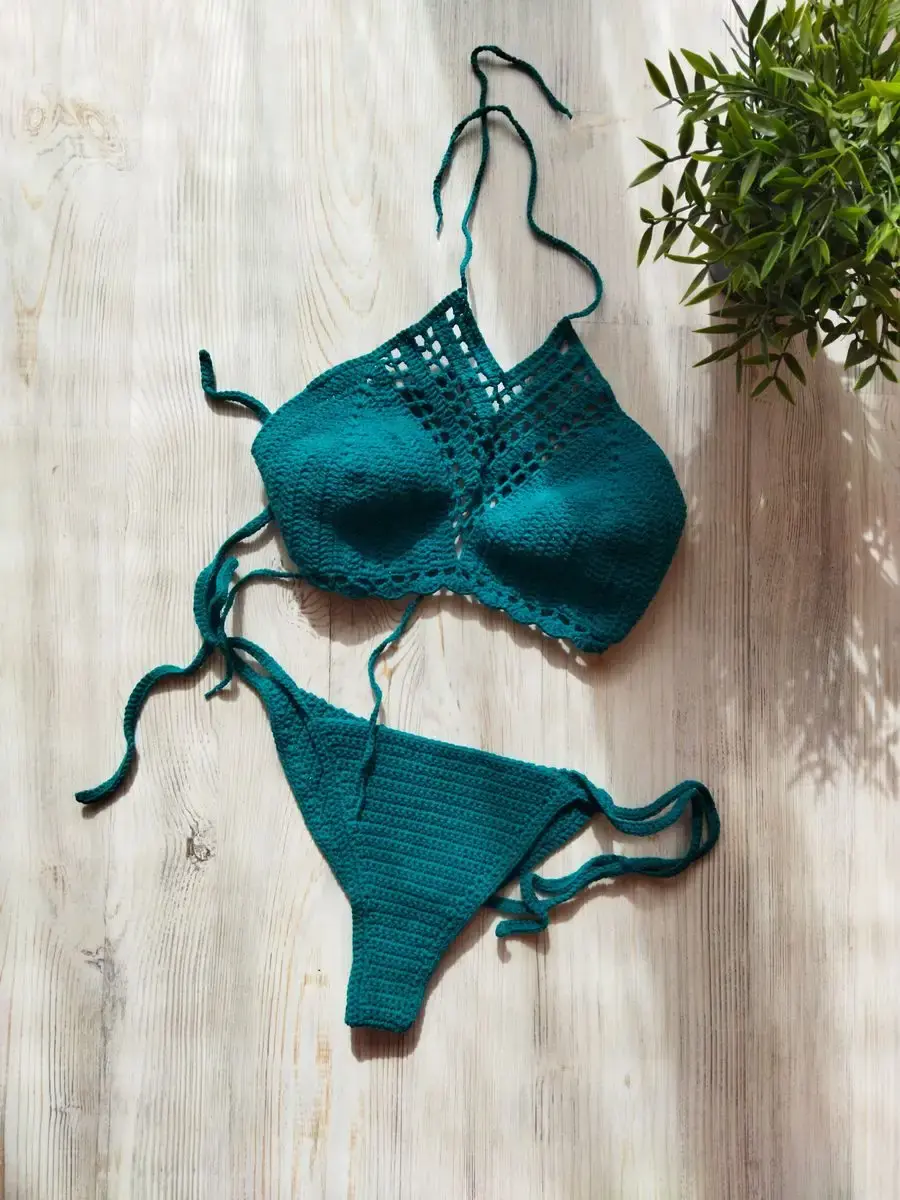Этот купальник связан вручную крючком из нежного хлопка.Он удобный и связан без швов. Это полностью ручная работа.