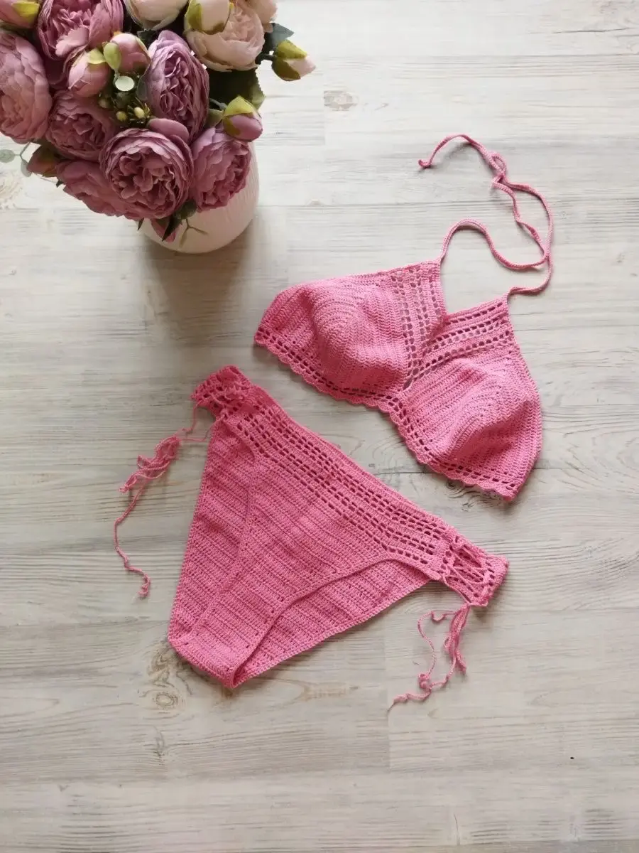 Этот купальник связан вручную крючком из нежного хлопка.Он удобный и связан без швов. Это полностью ручная работа.