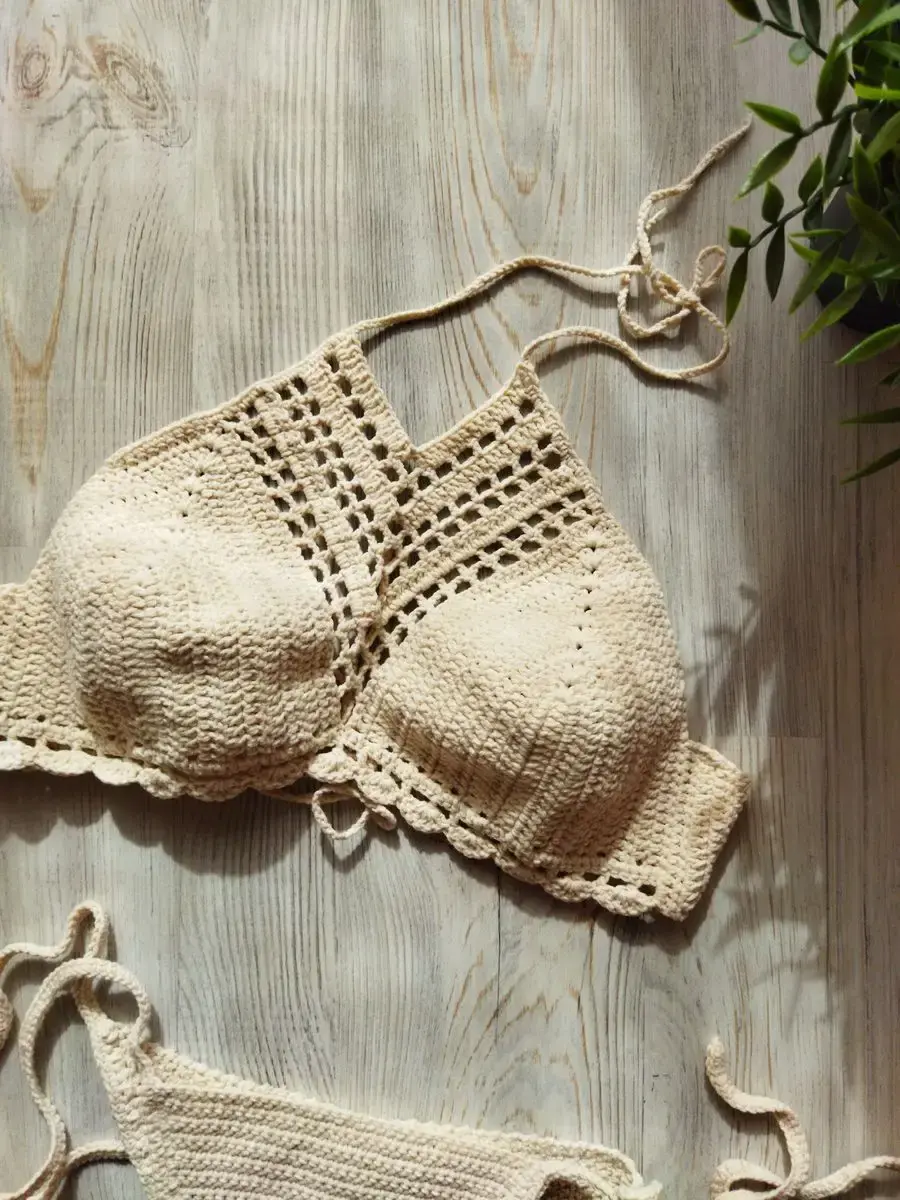 Этот купальник связан вручную крючком из нежного хлопка.Он удобный и связан без швов. Это полностью ручная работа.