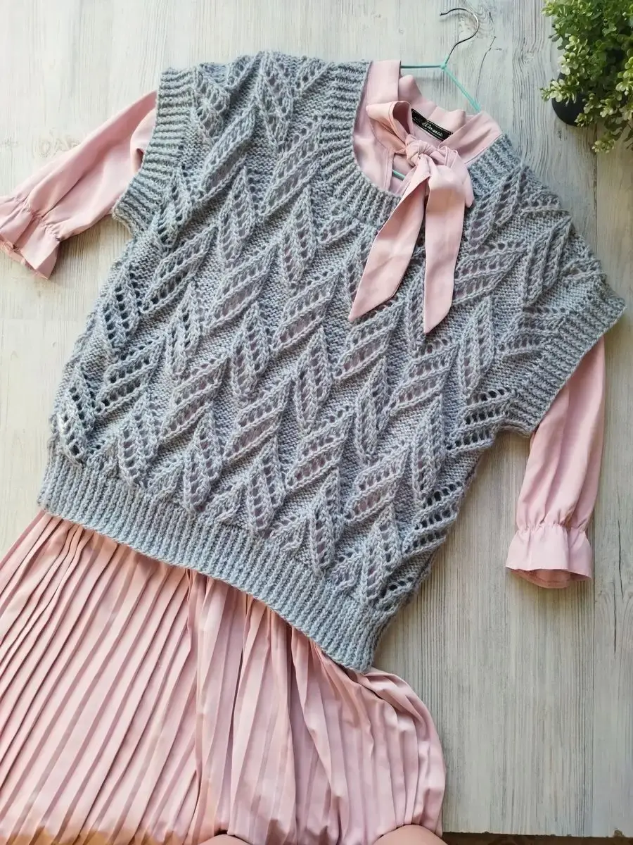Вязаная женская жилетка. Эта жилетка как и все вещи нашего магазина выполнена вручную. Для ее создания использовалась качественная итальянская пряжа.