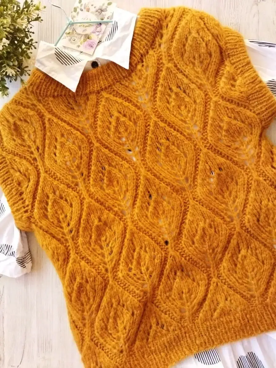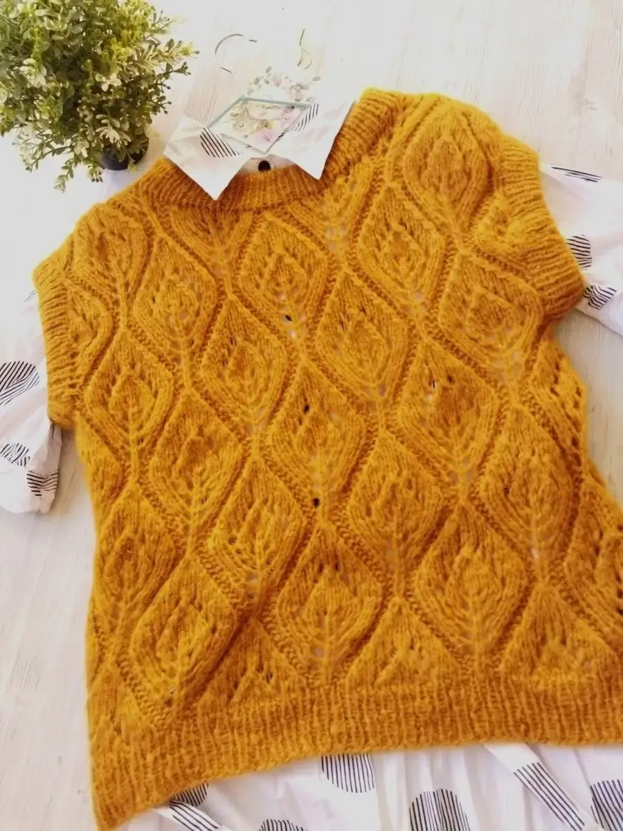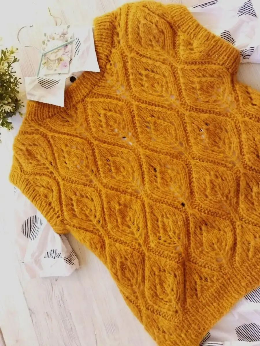Вязаная женская жилетка. Эта жилетка как и все вещи нашего магазина выполнена вручную. Для ее создания использовалась качественная итальянская пряжа.