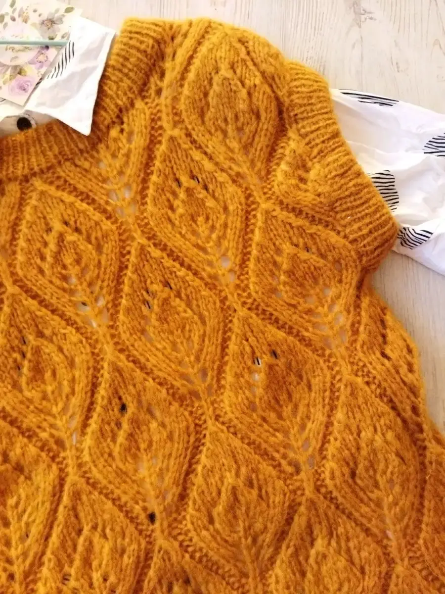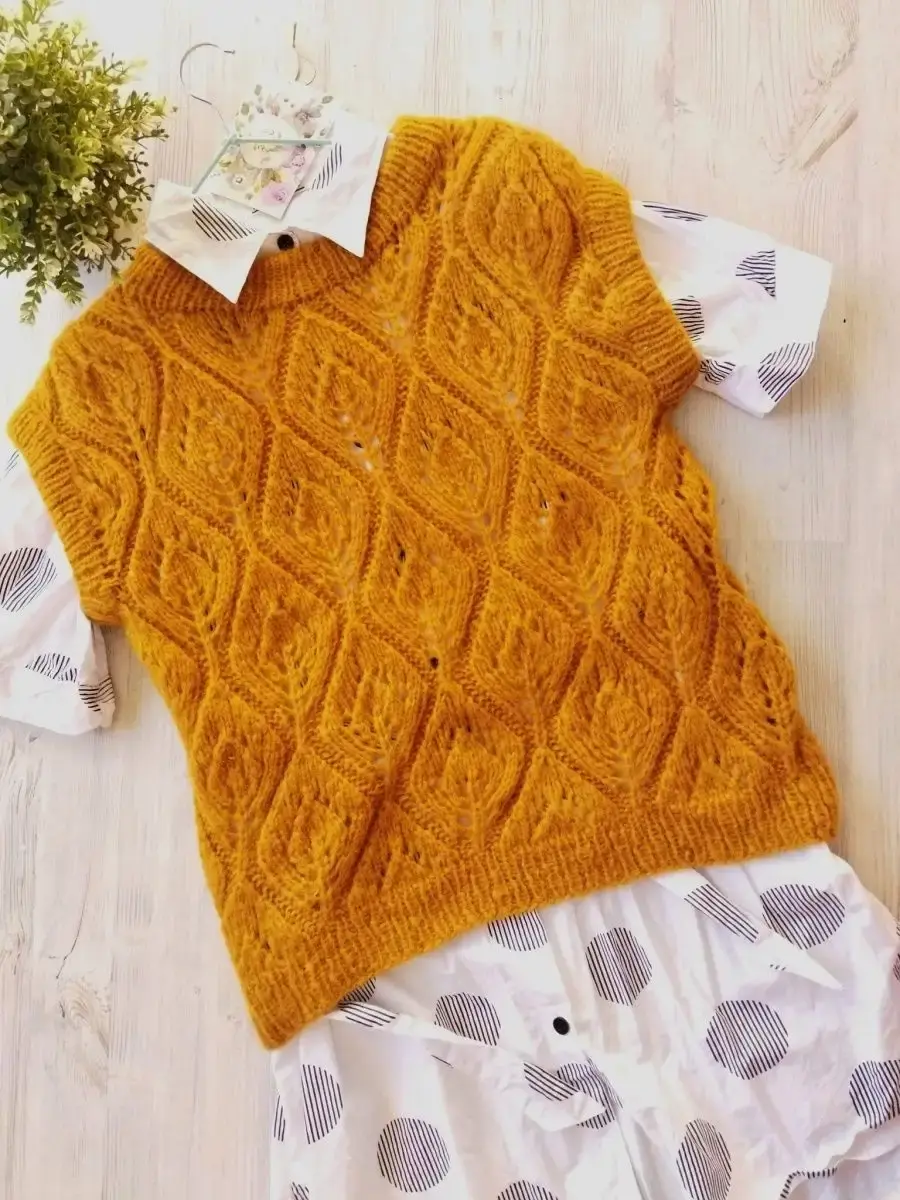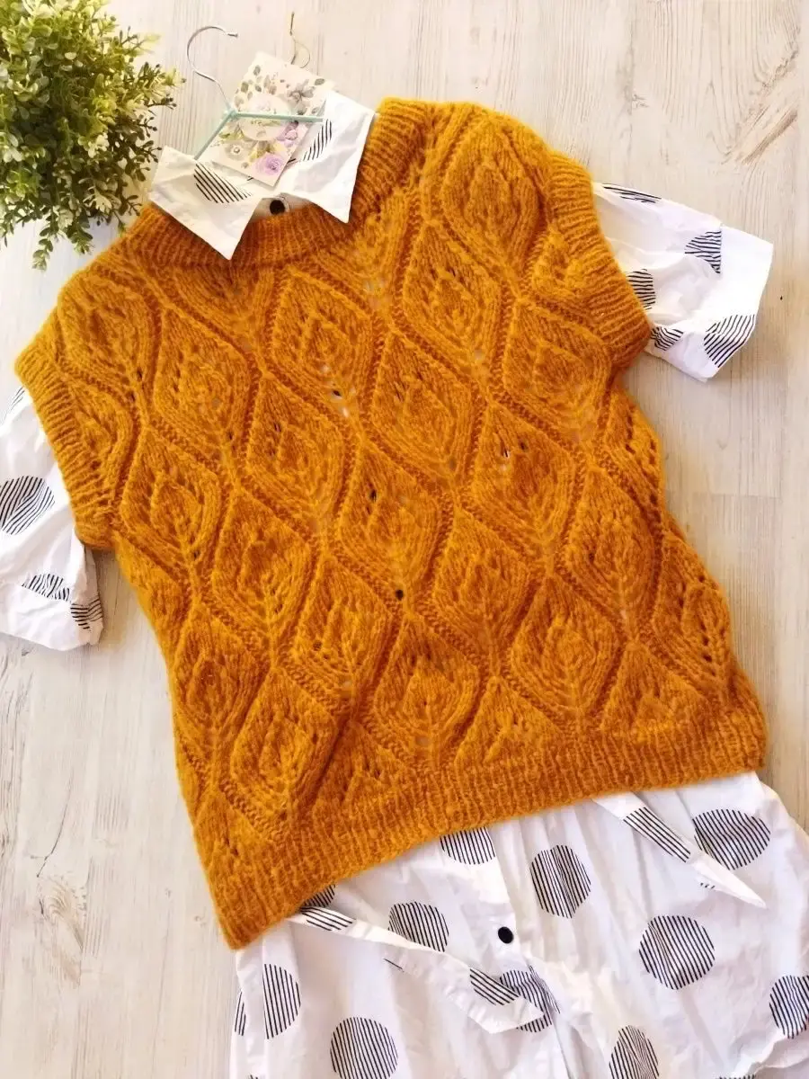 Вязаная женская жилетка. Эта жилетка как и все вещи нашего магазина выполнена вручную. Для ее создания использовалась качественная итальянская пряжа.