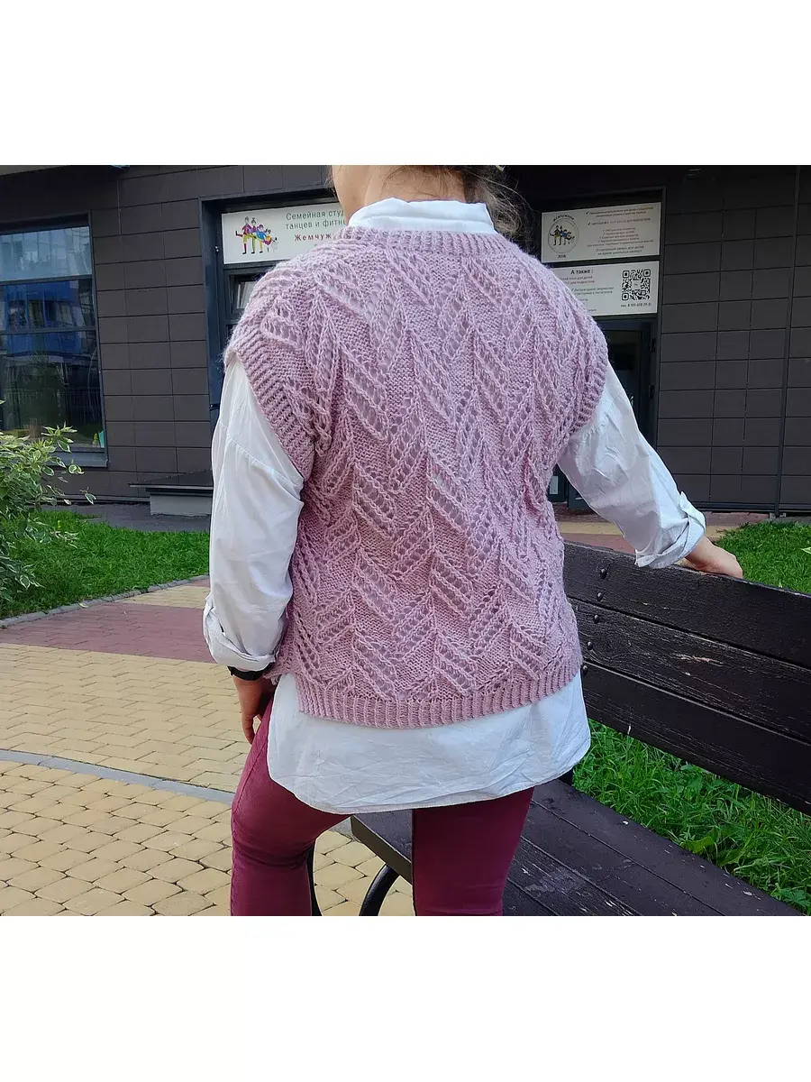 Вязаная женская жилетка. Эта жилетка как и все вещи нашего магазина выполнена вручную. Для ее создания использовалась качественная итальянская пряжа.